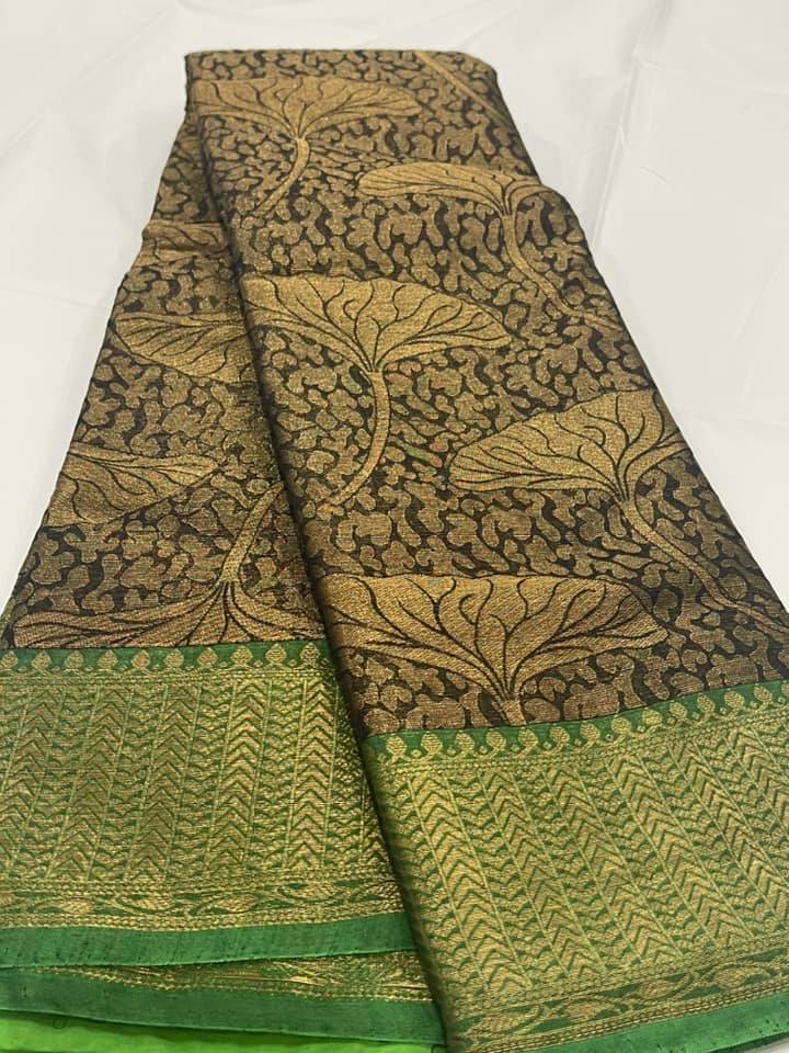 Elevate your casual outings with this Black & Green cotton silk saree, expertly crafted for comfort and style. The breathable cotton silk blend ensures a soft, lightweight feel, perfect for all-day wear. Its elegant black and green hues add a subtle sophistication
