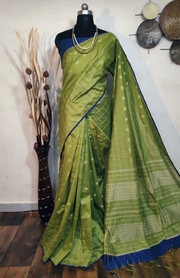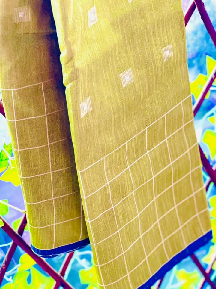 This budget-friendly cotton saree in a soothing green shade features a classic check design, combining comfort with timeless style. Its breathable fabric makes it ideal for daily wear, while the subtle pattern adds a touch of elegance.